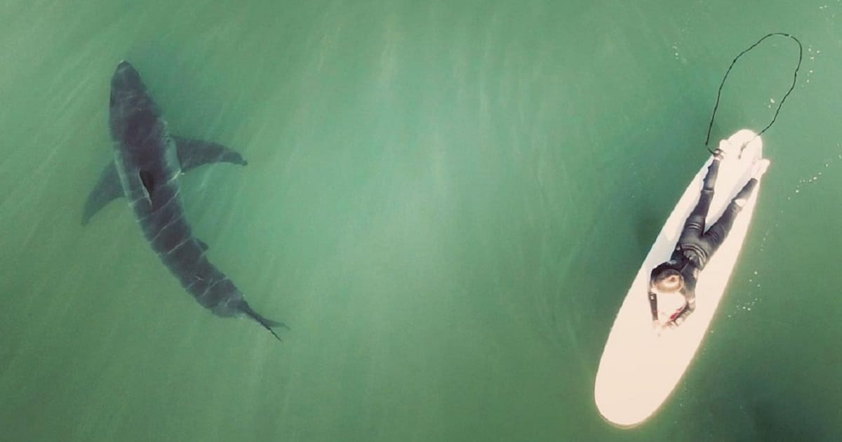 Nos últimos dias, tiveram grande repercussão na internet imagens captadas por drone numa praia de Costa del Mar, em San Diego, na Califórnia (EUA), que mostram vários tubarões-brancos nadando logo abaixo de surfistas. Por vezes, os animais nem são notados pelas pessoas.