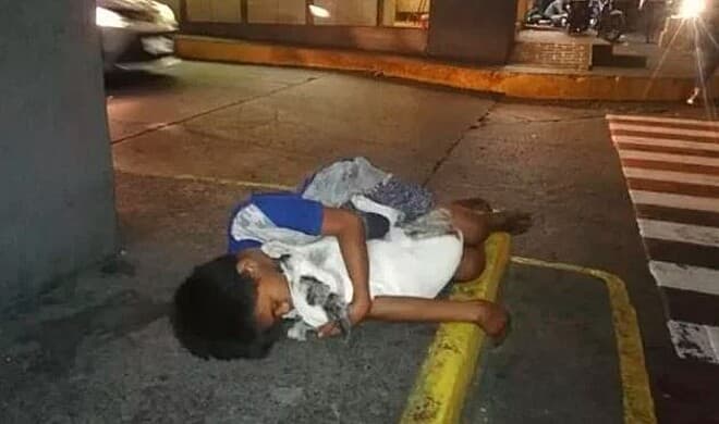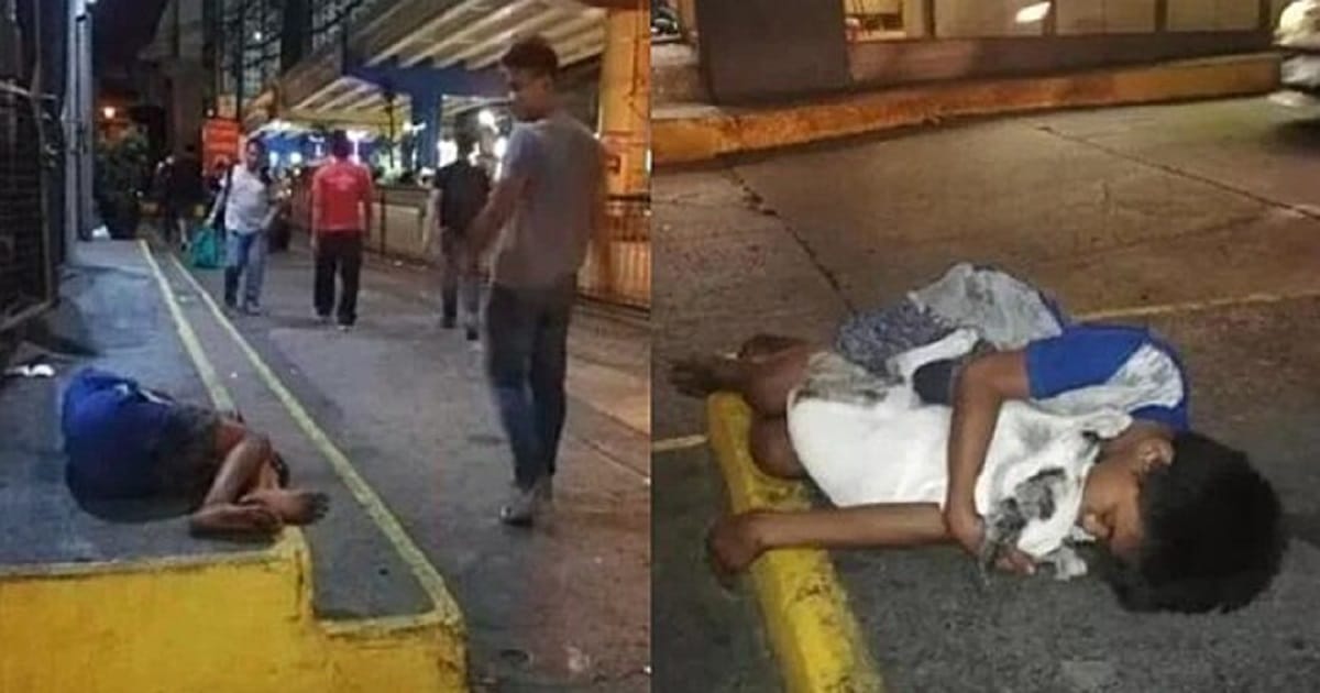 Viralizou nas redes sociais nos últimos dias uma série de registros forográficos feitos por um homem chamado Jem Villimo na área do Shaw Boulevard, rodovia que conecta duas cidades, nas Filipinas. Nas imagens, um menino de cerca de 12 anos é visto dormindo na rua abraçado ao seu cão para poder se aquecer.