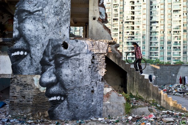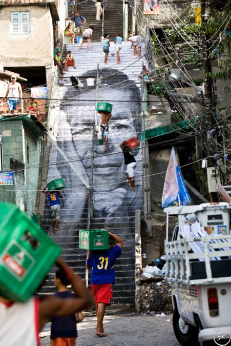 O trabalho de street art que o premiado fotógrafo francês JR vem desenvolvendo pelo mundo nos últimos anos apresenta a colocação de painéis gigantes com fotografias de pessoas que moram em localidades socialmente excluídas. JR torna visível o “invisível” através de verdadeiras galerias de arte a céu aberto: favelas do Rio de Janeiro como as do Morro da Providência, ruínas em Xangai, a periferia de Paris e comunidades de Serra Leona, na África são alguns exemplos de alguns dos lugares onde esse artista humanista dá olhos a quem precisa ser visto e, com esses olhos, mostra ao mundo que há vida e que ela tem uma força maior do que qualquer exclusão.