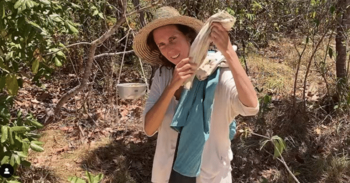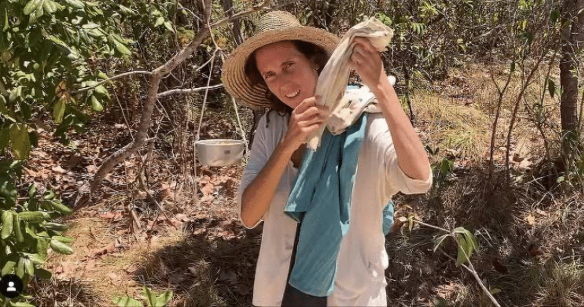 Julia contou que a vida longe da cidade é marcada por tarefas manuais e contato direto com a natureza. Em uma das casas que construiu, localizada em um terreno isolado, ela viveu com o filho em uma estrutura básica, feita de palha e pedra, sem banheiro ou água encanada.