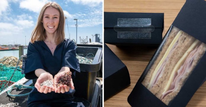 Lucy Hughes, uma jovem de 23 anos da Universidade de Sussex, na Inglaterra, criou um material semelhante ao plástico usando resíduos orgânicos que ela adquiriu na indústria pesqueira e algas vermelhas.