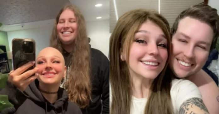 De maneira descontraída, Cody brincou com a situação ao dizer: “Eu pensei que se eu deixasse meu cabelo crescer para dar a ela, ela não poderia terminar comigo.” Hannah, de 27 anos, recebeu o diagnóstico de alopecia aos sete anos e, ao longo do tempo, escondeu estrategicamente a perda de cabelo da melhor forma possível.