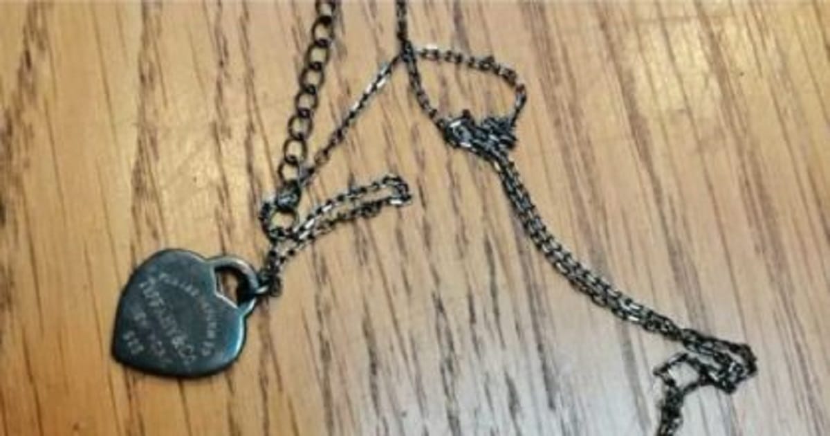 Lucy, de 22 anos, que atualmente está trabalhando e estudando, voltou para casa depois de um turno e percebeu que suas joias de prata tinham ficado pretas e manchadas.