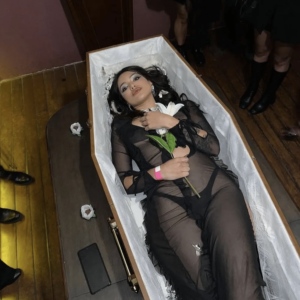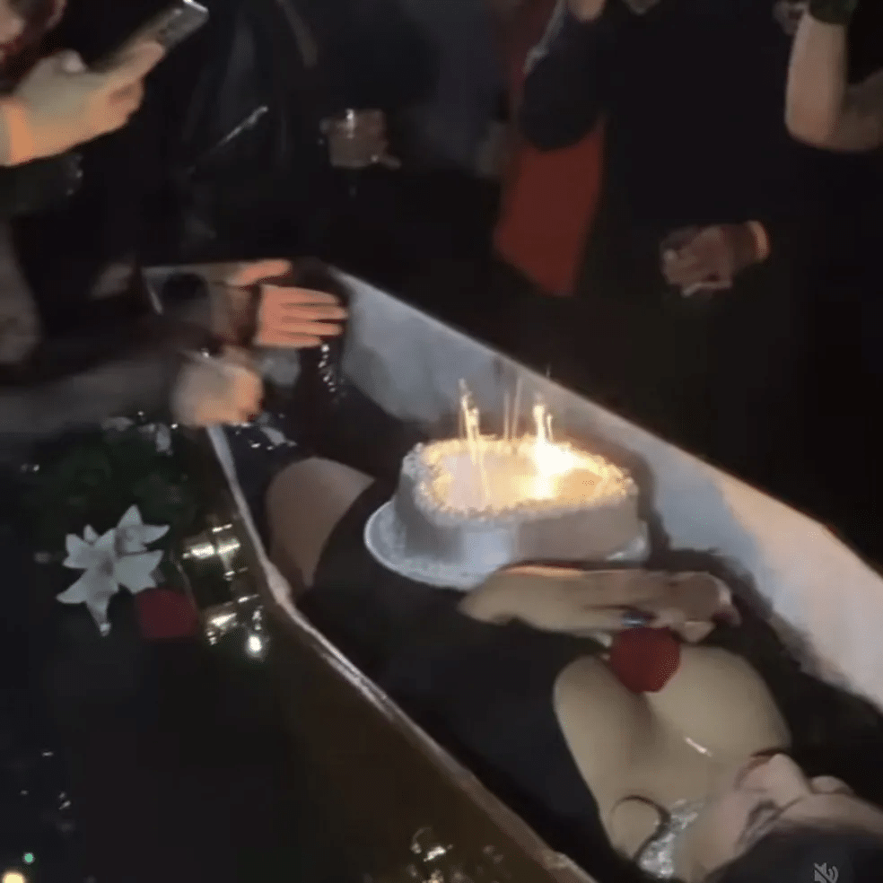 Grazi viralizou nas redes sociais ao compartilhar na web as fotos da comemoração de seu aniversário de 28 anos. O motivo do interesse de tantas pessoas pelas imagens não é outro senão a decoração inusitada da festa. A jovem celebrou a idade nova deitada em um caixão, em um ambiente decorado para remeter a um velório.