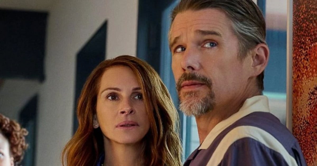 O filme abre com Amanda Sandford ( Julia Roberts ) informando ao marido Clay ( Ethan Hawke ) que alugou uma casa fabulosa na praia para férias improvisadas. Seu discurso sobre querer se afastar das pessoas – “porque ela as odeia” – é contundente, divertido e típico de sua natureza sarcástica. Eles colocam seus filhos, o adolescente Archie (Charlie Evans) e a adolescente Rose (Farrah Mackenzie) no carro e partem para Point Comfort.