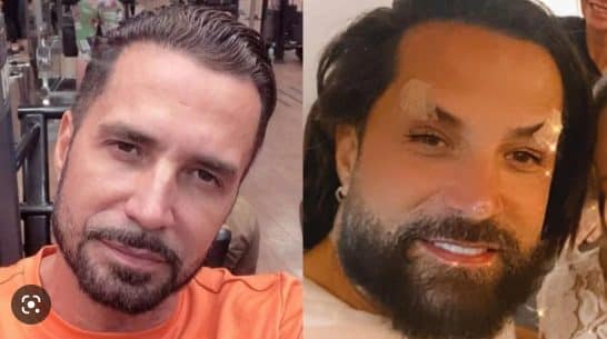 Para finalizar, segue uma imagem que compara uma imagem do cantor com ele mesmo, antes de realizar procedimentos: