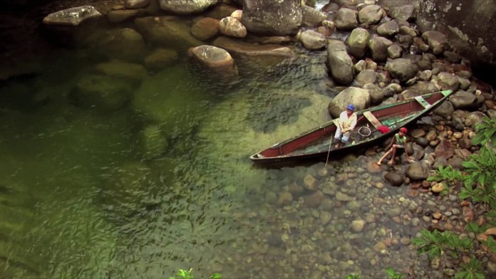 Em um sítio, distante de tudo, vivem o menino Lucas e seu avô. O avô só sabe a língua do rio, dos bichos e das plantas. Lucas está cansado da rotina de pescar e das histórias inventadas pelo avô, que diz pescá-las no rio: palavra por palavra. Um dia, a mãe de Lucas vem buscá-lo para morar na cidade. Mesmo contrariado, o avô o encoraja a ir para aprender a falar língua de gente. Na escola, a nova língua não entra na sua cabeça. Não cabe. E pra piorar, ele começa a escrever uma língua inventada, só dele. Todos pensam que ele tem um parafuso a menos. Em seguida, sua mãe recebe a notícia da morte do avô. De volta ao sítio, Lucas corre em desespero na esperança de encontrá-lo, na ilusão daquela notícia ser uma história inventada. Mas não é. Desolado, ele se senta a margem do rio, e sem se dar conta, dezenas de palavras são trazidas pela correnteza.