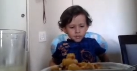 A mãe se surpreende com a argumentação do filho e chora no final do vídeo.