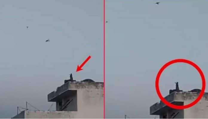 Uma guarda florestal indiana flagrou uma cena completamente inusitada: um macaquinho no topo de um prédio empinando pipa.