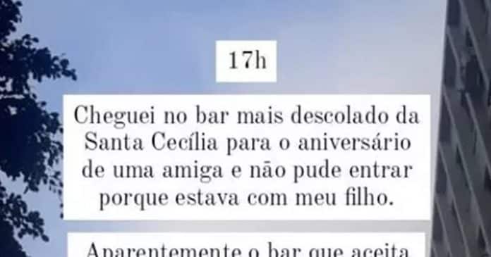 Esse caso aconteceu na tarde deste domingo (3), quando uma mãe solo chegou em um bar na capital paulista, mas acabou sendo barrada por estar acompanhada de seu filho de 5 anos.