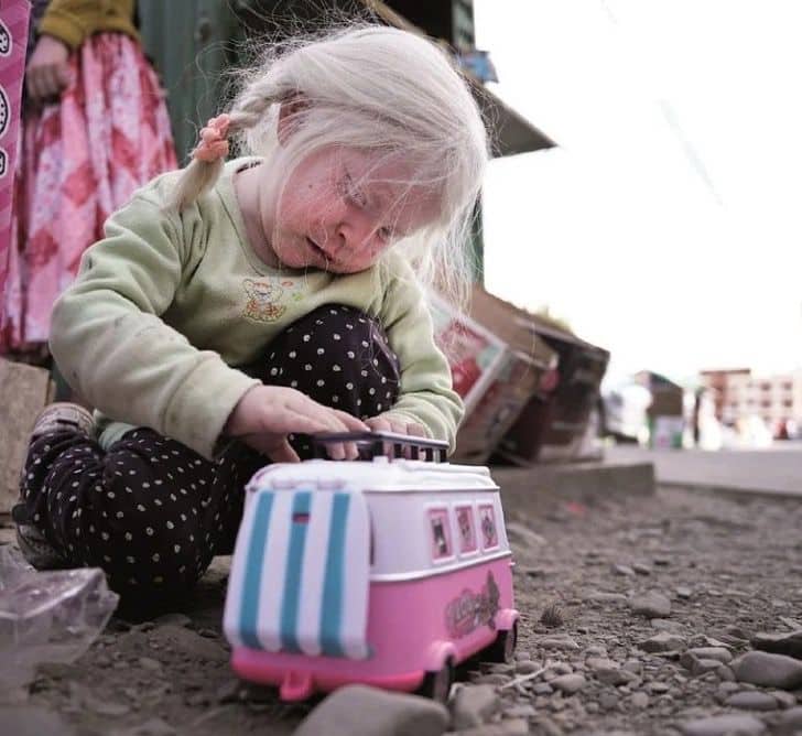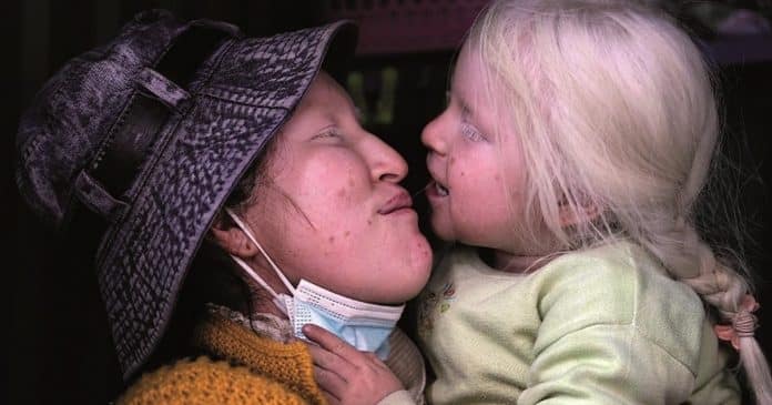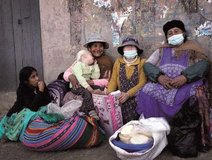Maritza Mamani tem como único bem material um quiosque de metal localizado em Chasquipampa, na Bolívia. É lá que, todas os dias pela manhã, ela acomoda os sacos de batata frita, uns de limão e outros de eucalipto, junto com as demais mercadorias que possui, para iniciar sua jornada de trabalho. É lá também que, até recentemente, ela dormiu com a sua filha de quatro anos, Maribel, que, como ela, também é albina. As duas já passaram muitas noites lá com medo e sem ter para onde ir. Abraçar uma à outra era seu único refúgio.
