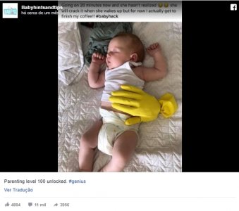 ¨Eu prefiro pensar que é uma piada e que ninguém deixaria um bebê com uma luva que poderia cair em sua boca e fazê-lo se engasgar. Quanta irresponsabilidade!¨