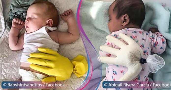 A luva parece ser um truque incrível e eficaz para manter um bebê calmo durante o sono e até mesmo quando estão acordados, mas coloca-lo ou colocar outros objetos no berço vai contra as diretrizes de segurança do sono, porque o bebê pode estar em perigo de asfixia.