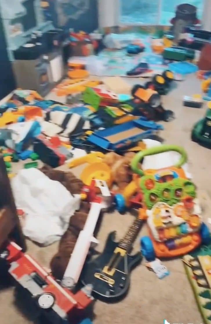 Nesse caso, a usuária do TikTok @tabathamarie decidiu ensinar uma lição ao filho de 5 anos colocando todos os brinquedos dele em um saco de lixo.