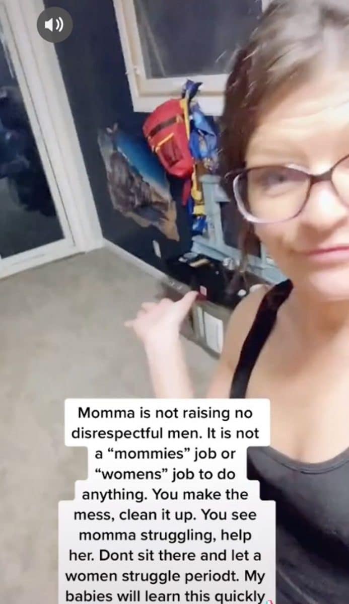 “Não quero criar homens desrespeitosos. Limpar não é um trabalho de ‘mães’ ou ‘mulheres’. Se você faz a bagunça, você limpa. Se você vê sua mãe tendo dificuldade para fazer as tarefas, deve ajudá-la. Você não pode simplesmente sentar e não fazer nada. Meus filhos vão aprender isso rapidamente.”, disse Tabatha Marie no TikTok.