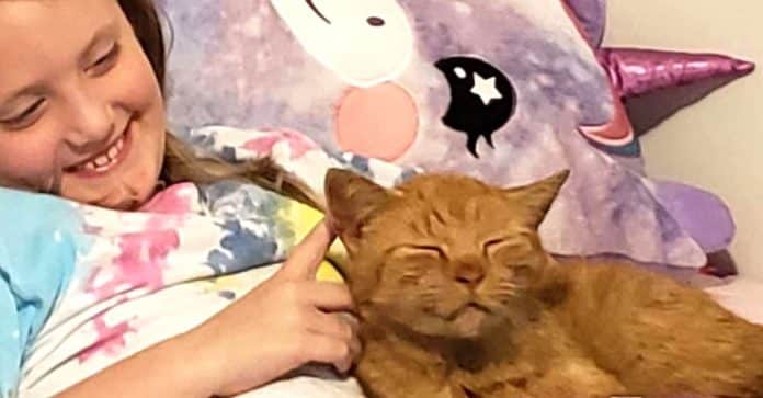 A filha de Lynn colocou o gato debaixo das cobertas, arrumou uma caixa de areia em seu armário e também juntou um pouco de comida e água para ele. Depois daquela noite, eles levaram o nomeado Pumpkin Jr. ao veterinário, onde o desparasitaram e ajudaram com as pulgas.