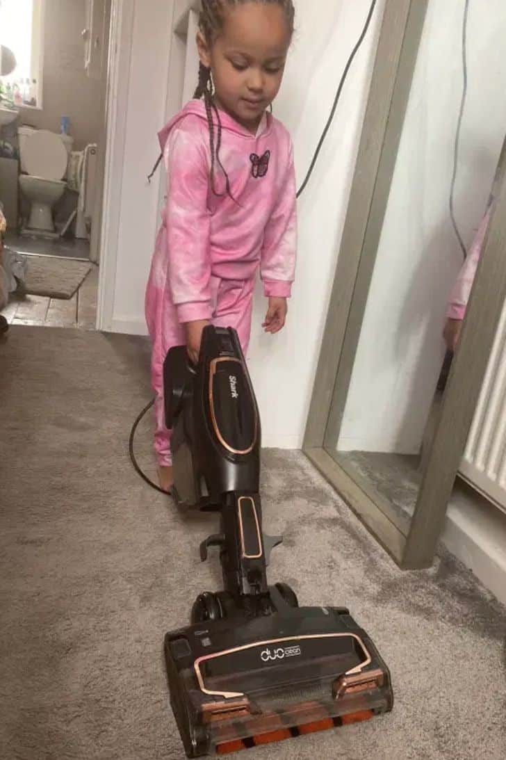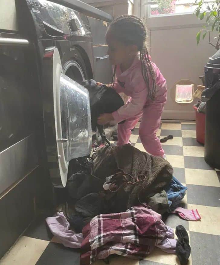 Como ela mesma disse, aos poucos a menina foi aprendendo a dinâmica de limpar roupas. No início, para Luna era “como uma brincadeira” e “ela adorava”. Então ele a ensinou a aspirar.