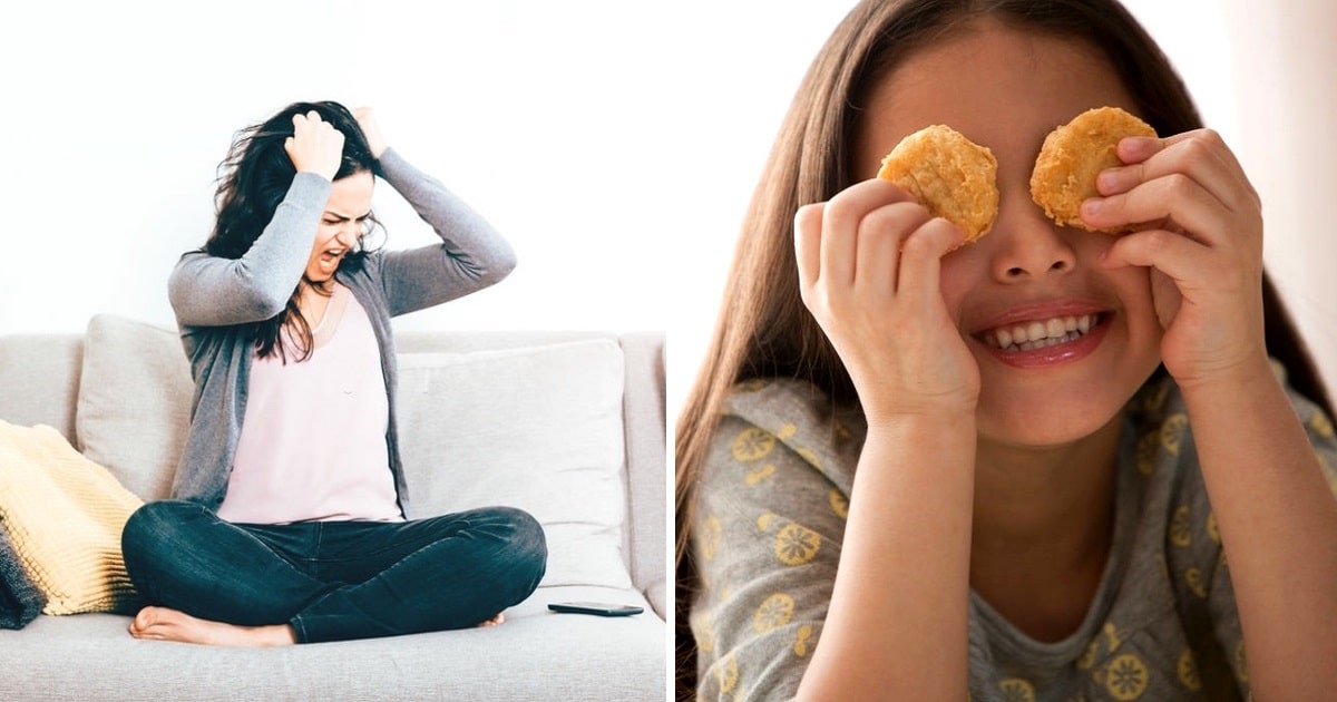 De acordo com a jovem babá, a mãe não a informou sobre o estilo de alimentação da família. Além disso, as crianças são extremamente bem comportadas, por isso a babá decidiu dar-lhes alguns nuggets de frango como recompensa.