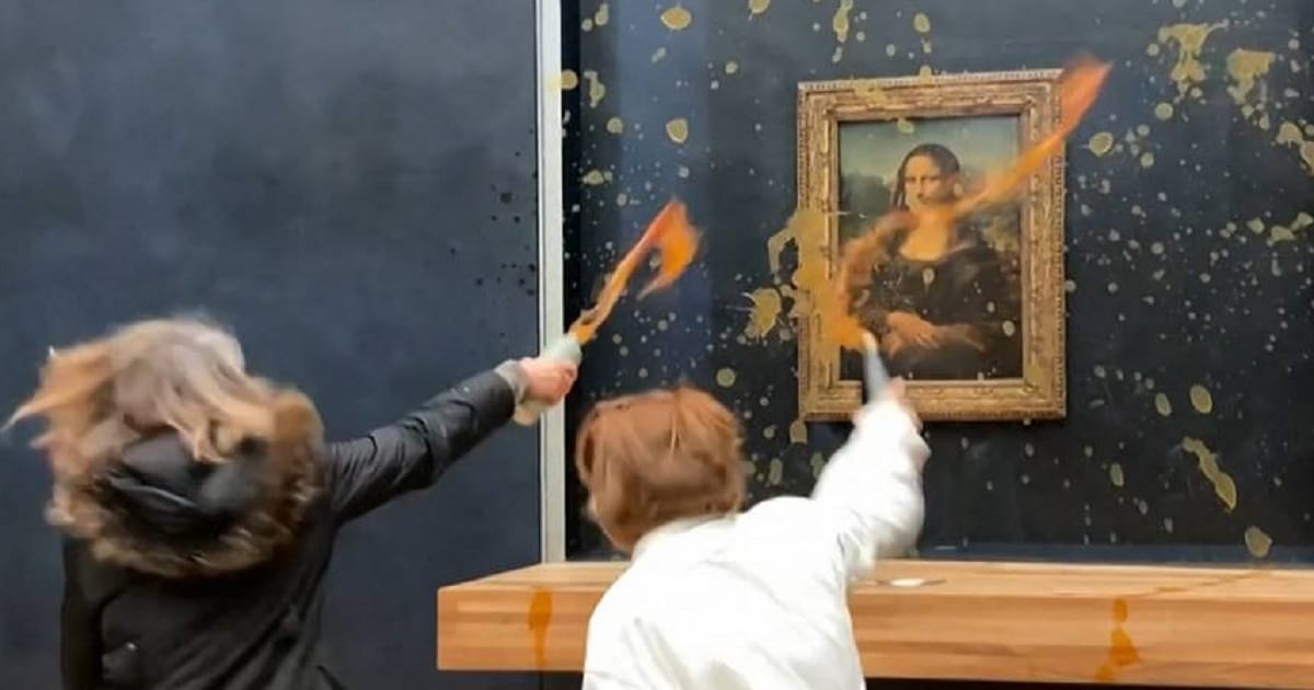 Um vídeo registrou o momento em que duas pessoas arremessaram sopa na pintura do século 16. Elas desafiaram as barreiras de segurança, clamando por “alimentação saudável e agricultura sustentável”. Ambas vestiam camisetas com a inscrição “Resposta Alimentar”. “O que é mais crucial, a arte ou o direito a alimentos saudáveis e sustentáveis? Nosso sistema agrícola está debilitado”, exclamou uma das ativistas em francês.