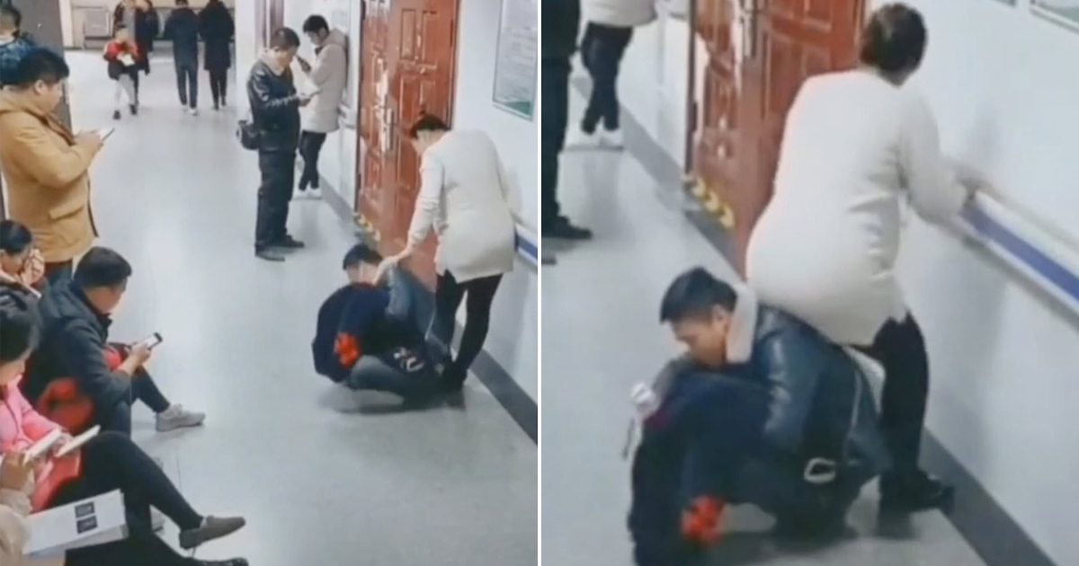 Um homem chinês tocou o coração de milhões de pessoas na Internet ao ser flagrado se oferecendo como cadeira para sua esposa grávida sentar-se de costas enquanto esperava para se consultar com o médico no hospital.