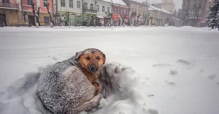 Em Uglegorsk, na Rússia, uma menina de 10 anos conseguiu sobreviver a uma forte tempestade de neve abraçando um cachorro de rua por 18 horas para se aquecer.
