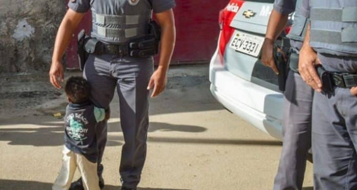“Ele (criança) veio espontaneamente e abraçou a perna do policial. As crianças se sensibilizam com o fardamento da PM e com as viaturas”, contou o tenente Galvão.