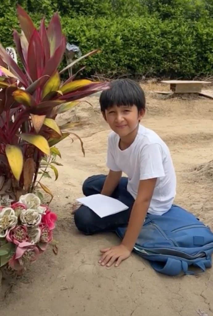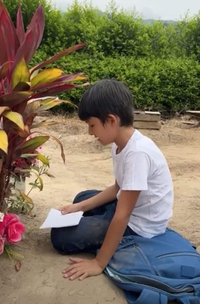 O menino explicou que ia todos os dias mostrar as notas para a falecida mãe. “Ela morreu há seis meses. Eu saio da escola e venho aqui todos os dias para visitá-la e fazer meu dever de casa.”, disse.