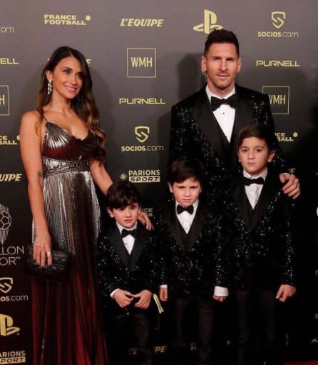 Ganhar a Bola de Ouro foi um grande dia para o jogador de futebol Lionel Messi. O argentino conseguiu ser coroado com a sua sétima Bola de Ouro. Messi compareceu ao evento na companhia da esposa Antonela e dos três filhos: Thiago, Mateo e Ciro. E ele fez questão de posar com toda a sua família no tapete vermelho da premiação.