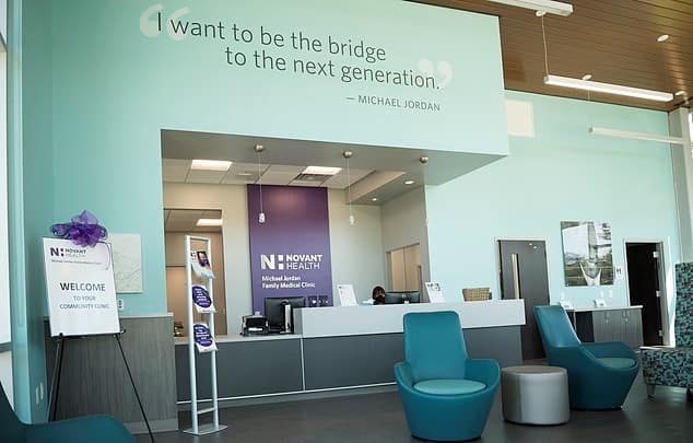 O famoso jogador de basquete americano Michael Jordan abriu recentemente uma segunda clínica na cidade de Charlotte (EUA) para dar acesso a pessoas sem seguridade social e complementar os serviços que ele já oferece com sua primeira clínica chamada Novant Health Michael Jordan Family Medical Clinic, na zona oeste da cidade.