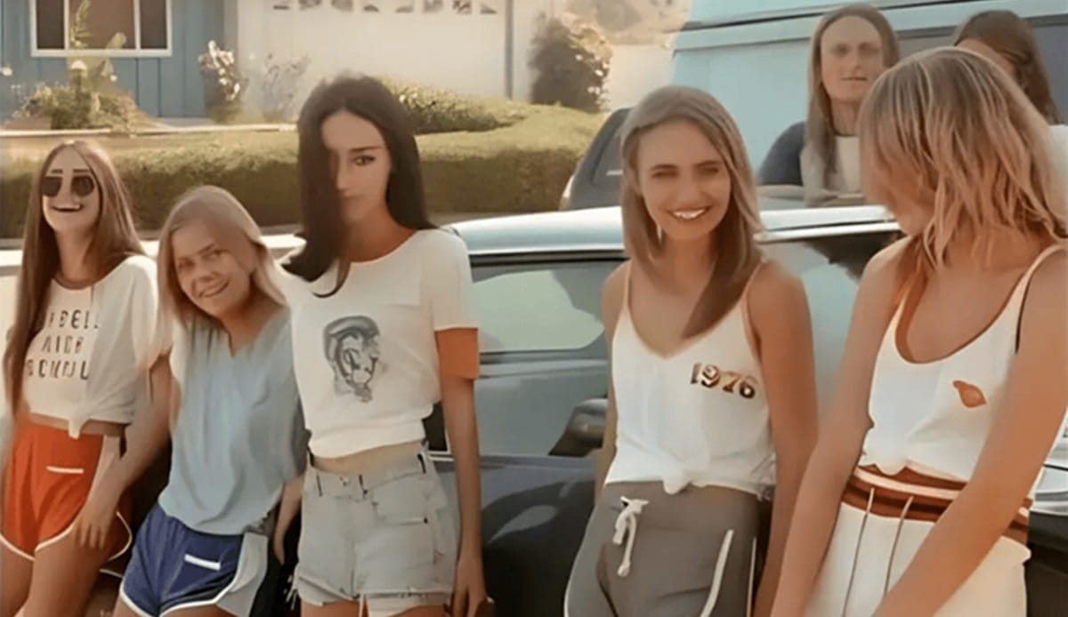 O que entrega o erro da foto é o short jeans usado por uma das garotas: esse modelo específico só ficou conhecido em 1979.