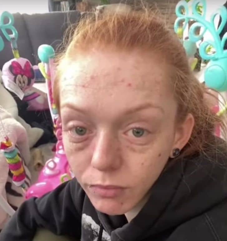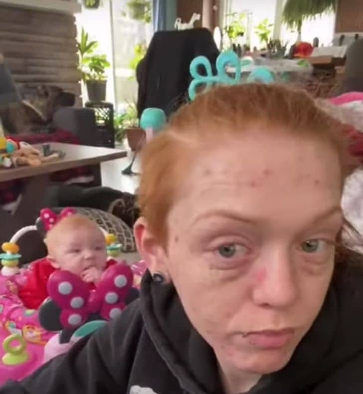 O vídeo primeiro focaliza Kendra com um olhar exausto e depois foca em sua bebê, a pequena Thalia. Assista: