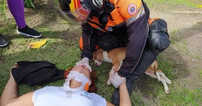 “Nossa equipe de moto resgate chegou e se deparou com a vítima de queda de moto e esse cãozinho, que em todo momento ficou do lado da vítima como se a conhecesse, demonstrando sentimento de culpa, como se estivesse se desculpando pelo ocorrido”, disse o cabo Emanuel, do Corpo de Bombeiros, em vídeo divulgado pela corporação.