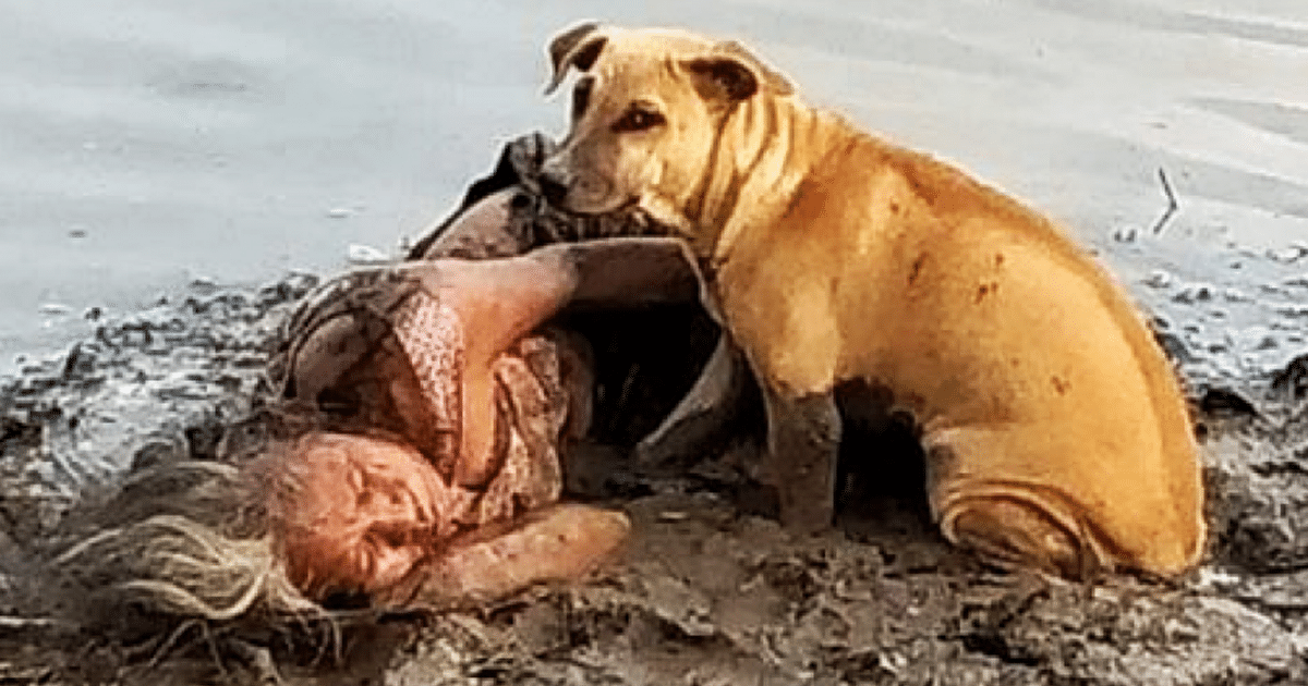 Ela foi vista por um jovem, que testemunhou um belo ato de amor e lealdade dos dois cães com sua dona, que estava em apuros. Os dois peludos estavam vigiando a mulher, que estava na margem de um rio, coberta de lama.