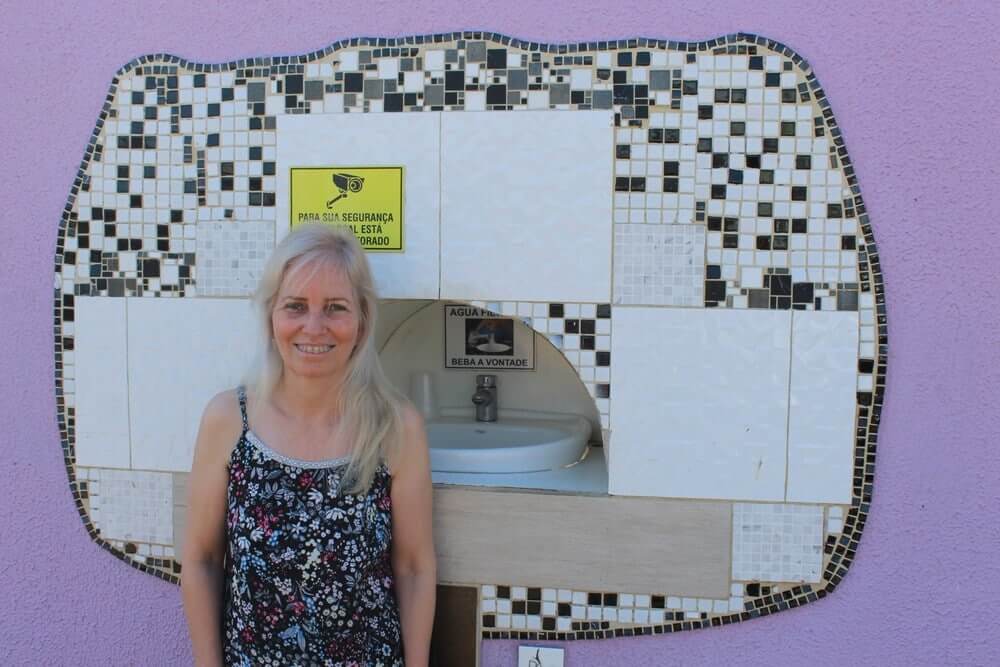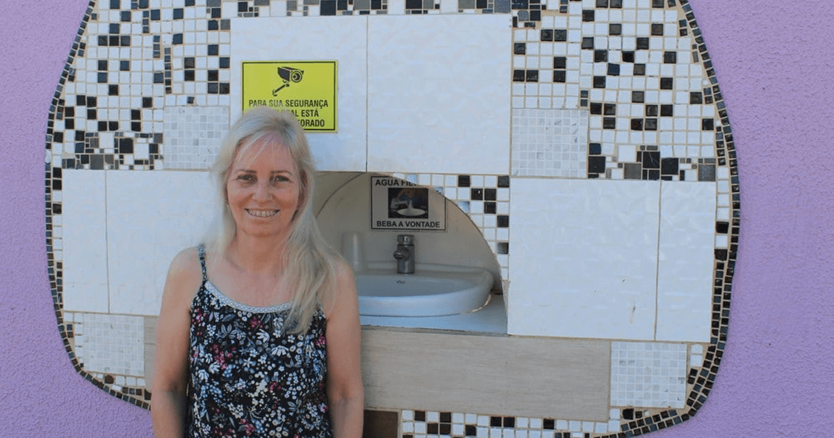 Márcia Regina Pini é uma advogada de Porto Velho, capital de Rondônia, que decidiu construir um bebedouro público no muro da sua própria casa para que as pessoas sem-abrigo possam beber água e “matar” a sua sede gratuitamente.