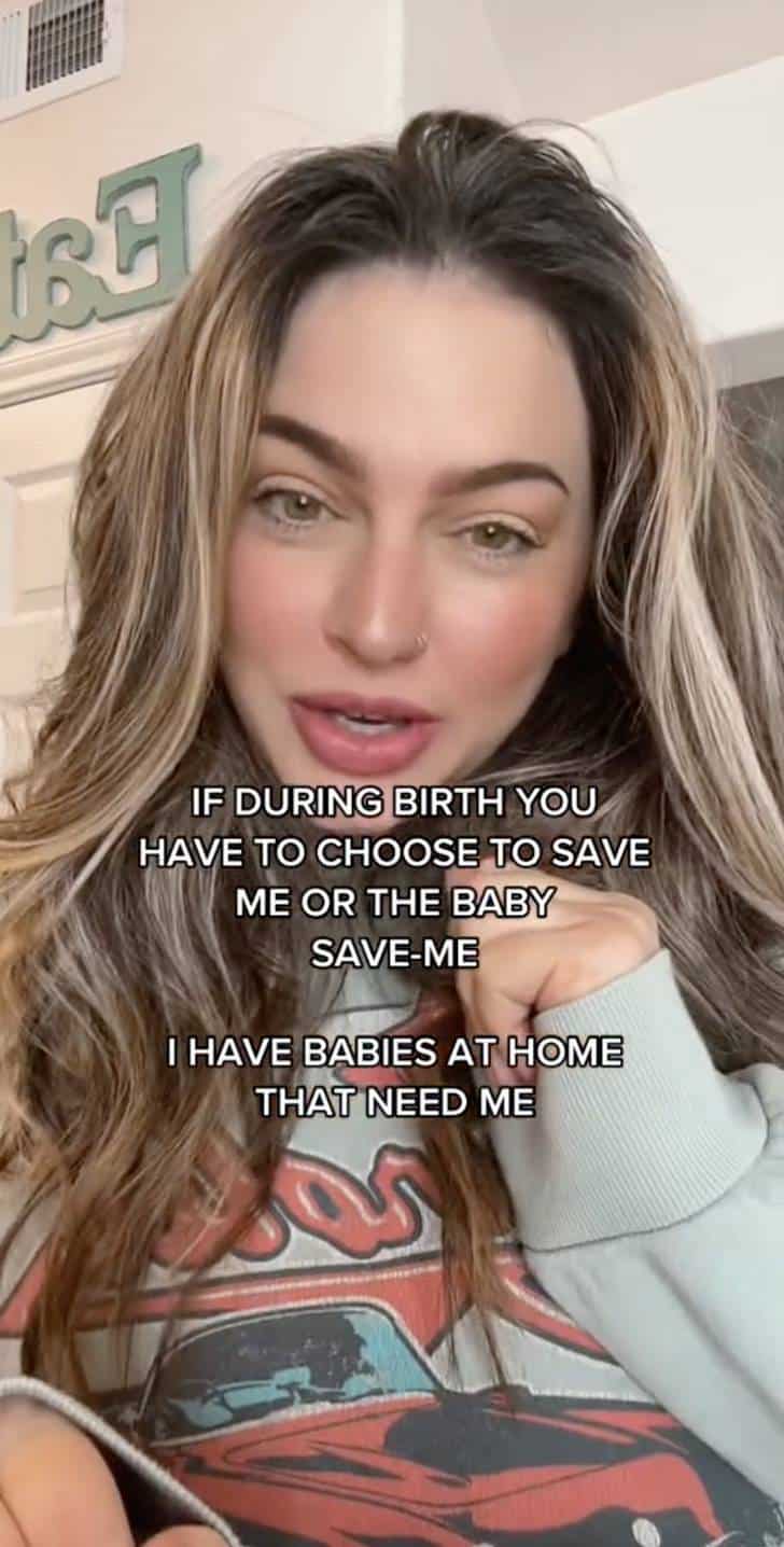 No vídeo em questão, Shelby diz que se ela estivesse em um trabalho de parto difícil e as enfermeiras tivessem que escolher entre salvá-la ou salvar seu bebê, ela definitivamente preferiria que a salvassem. “Tenho filhos em casa que precisam de mim”, explicou ela.
