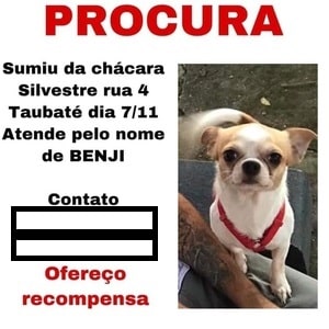 Se você tem um cãozinho em casa e o ama como ele merece ser amado, sabe que se um dia ele simplesmente desaparecesse, você não mediria esforços para encontrá-lo. Pois não foi diferente com uma família de Taubaté, no interior de São Paulo, que por uma semana se angustiou sem saber por onde anadava o seu amiguinho de quatro patas. No desespero para descobrir o seu paradeiro, eles chegaram a oferecer o carro da família, um Passat, ano 1984, avaliado em R$ 3 mil, como recompensa para quem encontrasse Benji, o cãozinho da raça chihuahua.