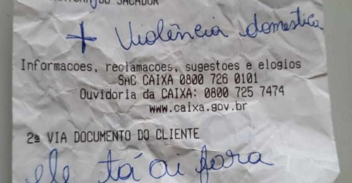 “Socorro, violência doméstica, ele tá lá fora”, conseguiu escrever sobre a conta que a funcionária lhe deu.