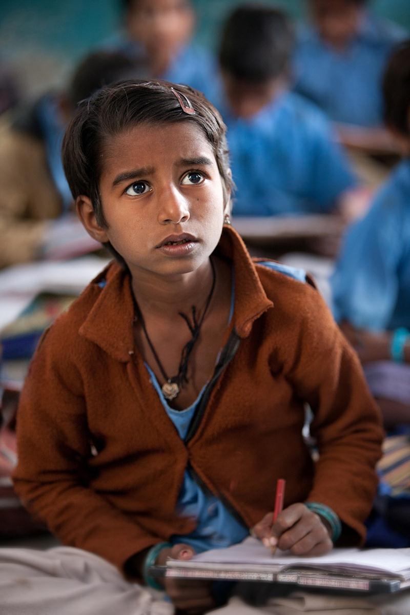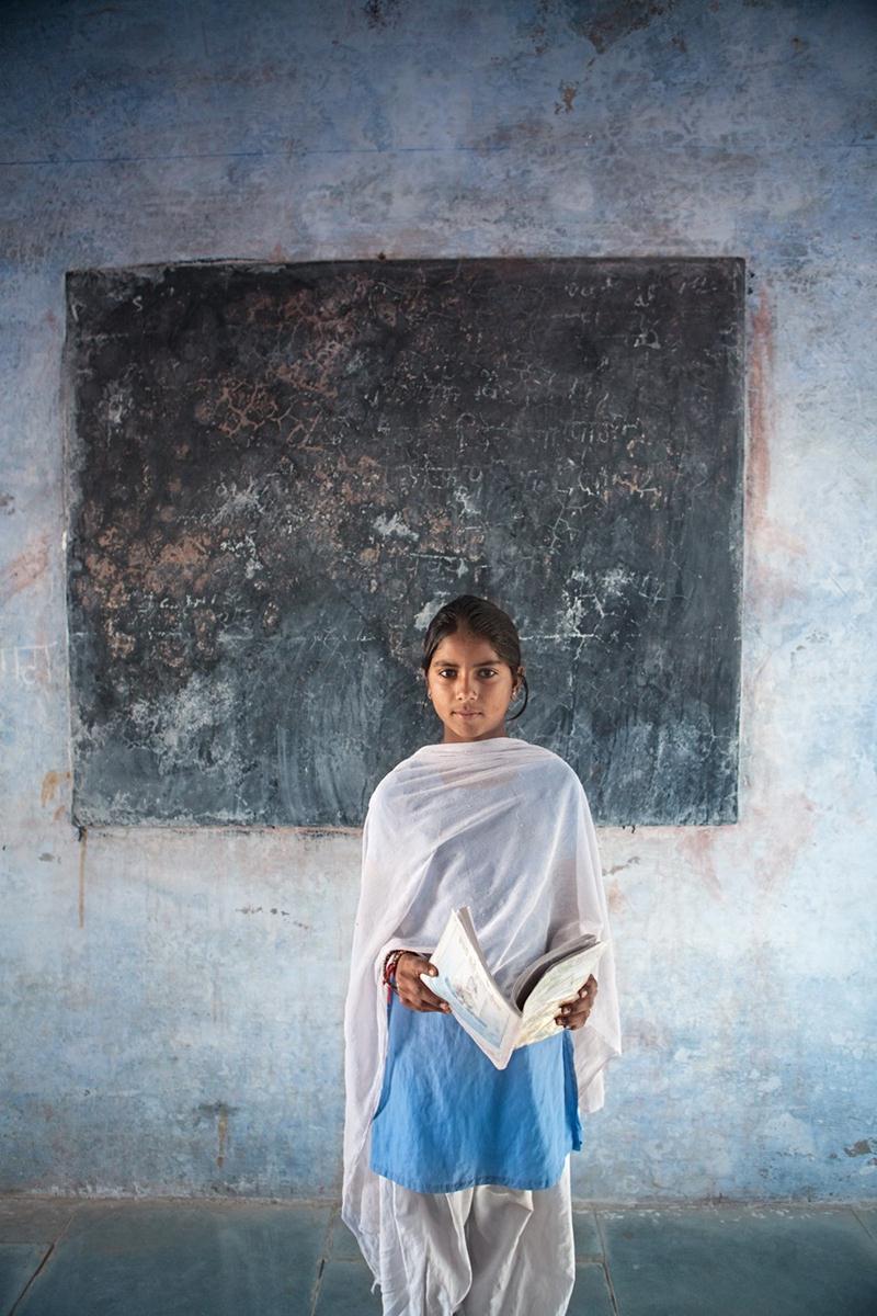 Sunita, outra aluna do programa Educar Garotas, tinha sete anos e estava no segundo grau quando Tuschman a fotografou.