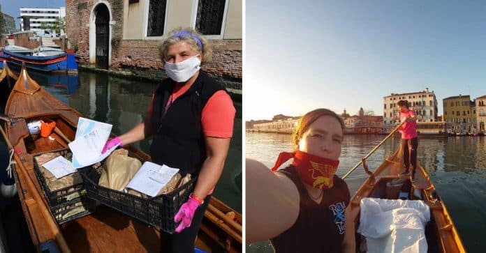 A Row Venice é uma organização feminina sem fins lucrativos dedicada à preservação das técnicas tradicionais de gondoleiros venezianos. Normalmente, a organização dá aulas de gondoleiro aos turistas da cidade, mas nessa situação, o foco teve que se tornar outro e agora elas entregam comida a idosos e a famílias necessitadas que não podem sair de casa.