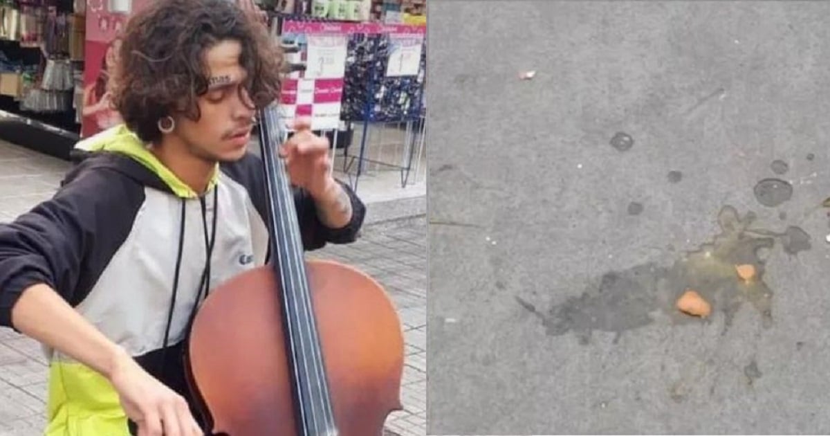 O músico de rua Luiz Felipe Salinas Almeida, de 20 anos, estava tocando violoncelo em frente a uma loja de instrumentos na Avenida Floriano Peixoto, em Santos, litoral de São Paulo, quando alguém, em um dos apartamentos vizinhos, jogou os ovos em direção a ele e seu instrumento.