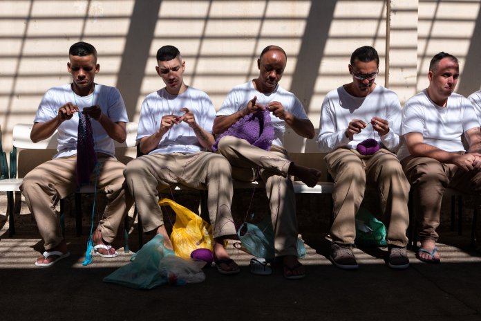 Imagem de capa: Detentos fazem peças em crochê momentos antes do desfile na penitenciária Adriano Marrey, em Guarulhos (SP) — Foto: Marcelo Brandt/G1