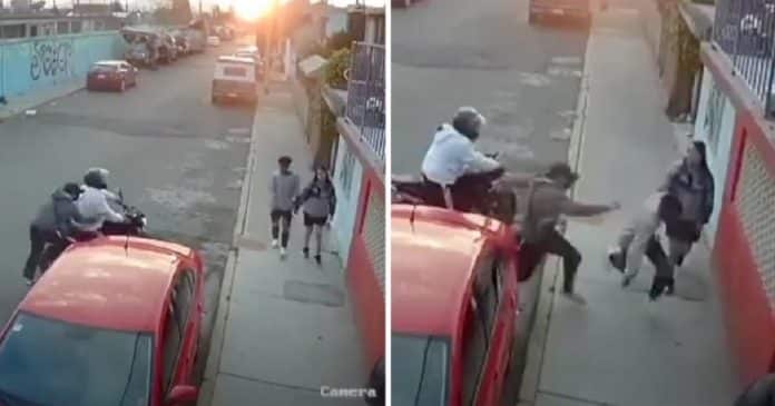 Esse tipo de roubo foi flagrado recentemente na Cidade do México. De acordo com informações do Puebla Online, uma câmera de segurança registrou uma agressão de um casal que caminhava pela calçada em plena luz do dia.