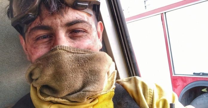 Sua garganta não aguentava mais e parecia que seus dias como bombeiro estavam chegando ao fim. No entanto, ele olhou para cima e se acalmou. Naquele momento ele apenas pediu ajuda, e foi quando seus companheiros apareceram no momento certo, atirando-se em cima dele, para que depois pudesse ser retirado do local incendiado.