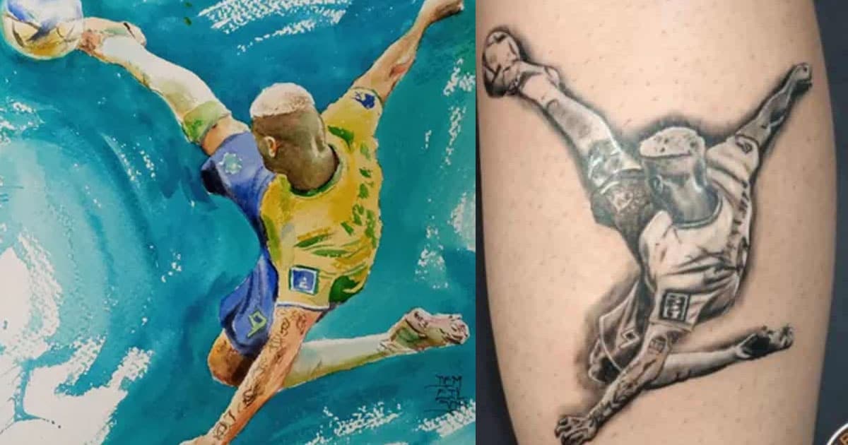 “Eu estava assistindo ao jogo do Brasil quando vi aquele golaço do Richarlison, enxerguei como uma obra de arte e publiquei nos meus stories [do Instagram] como desenho disponível. Queria fazer um desenho do momento que entrou para a história da Seleção Brasileira”, explicou o tatuador para o G1