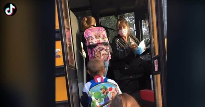 Nas imagens, Cassandra se despede dos seus filhos enquanto eles entram no ônibus escolar e depois pede para a motorista: “por favor, não grite com meus filhos hoje”. A mulher retruca, com raiva: “Eu não grito com seus filhos!”, enquanto distribui máscaras para as crianças.