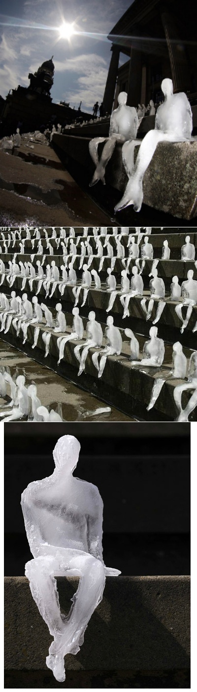 Melting Man, Berlin- This amazing installation of 1,000 melting men was done in collaboration with the WWF to highlight global warming. #street @lexi Pixel R Taylor #ice @abbey Phillips Regan Truax://www.unurth.com/Nele-Azevedo-Melting-Man-Berlin