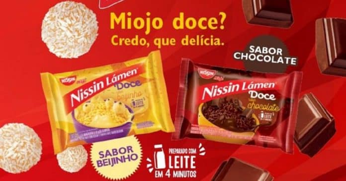 Nesta terça-feira (19), a Nissin, marca japonesa de macarrão instantâneo, anunciou o lançamento de uma nova linha de miojos doces, de chocolate e beijinho de coco. A aposta inusitada imediatamente despertou curiosidade e gerou muitos memes na internet.