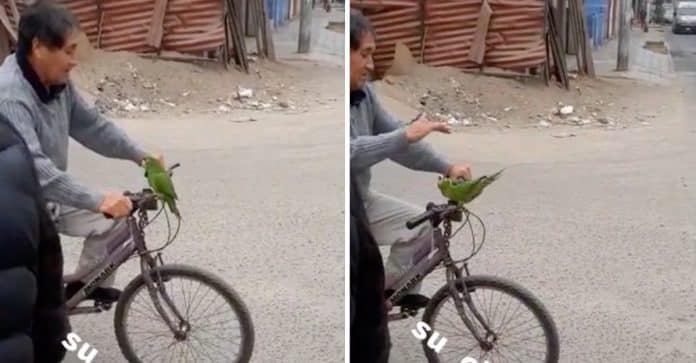 Com alguns toques na cabeça do pássaro, ele o fez gritar e assim simulou que tinha uma buzina como se fosse uma motocicleta. Este clipe foi postado pelo usuário @cristhian_0326 em sua conta na rede social TikTok .