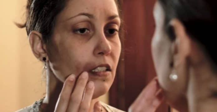 O polêmico clipe mostra uma mulher que sofre violência doméstica dizendo que oraria e perdoaria o marido agressor. Em nenhum momento se fala em denunciar.