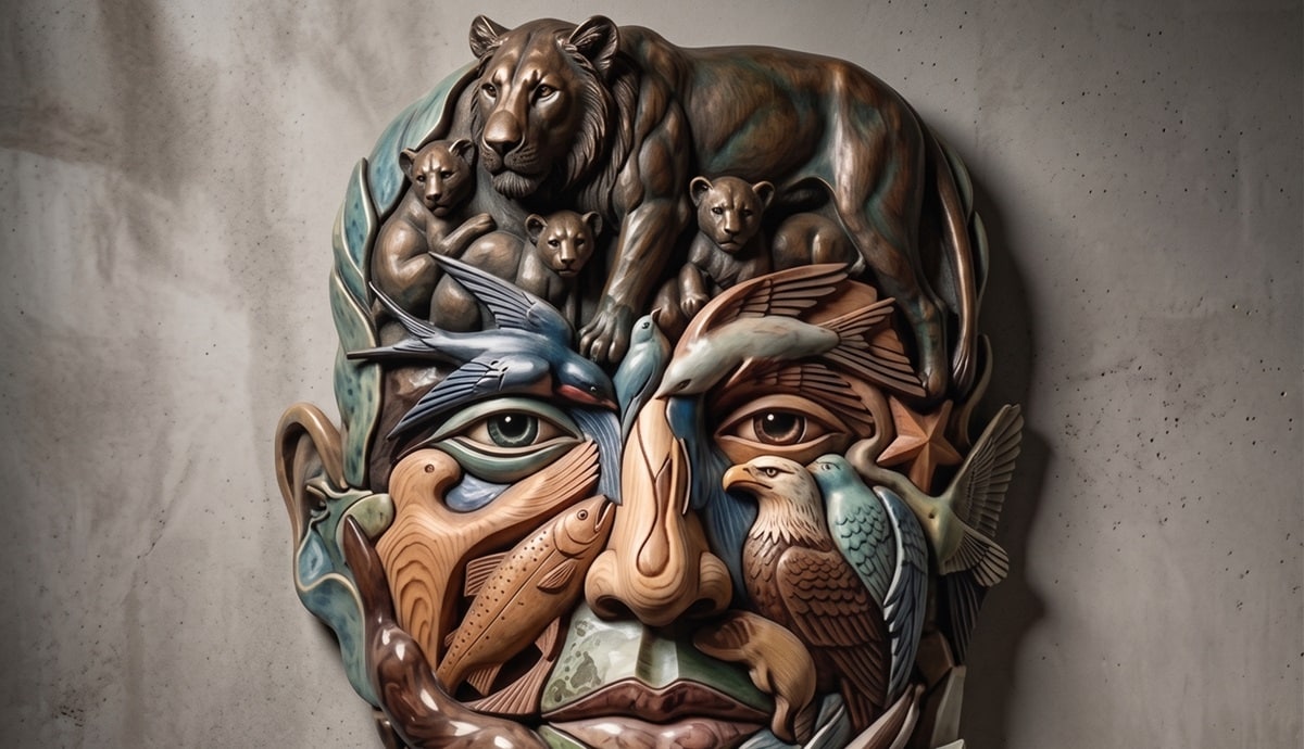 Se o olhar bateu primeiro nos animais menores, como os que aparecem na boca e na mandíbula da imagem, isso pode indicar alguém muito voltado para vínculos, acolhimento e convivência.